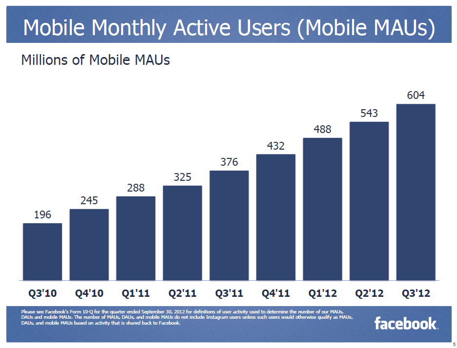 Gestern war es so weit: Facebook hat aktuelle Zahlen zum 3. Quartal 2012 vorgelegt. Der Umsatz und Gewinn interessiert uns hier zwar nicht primär, aber trotzdem kurz dazu.