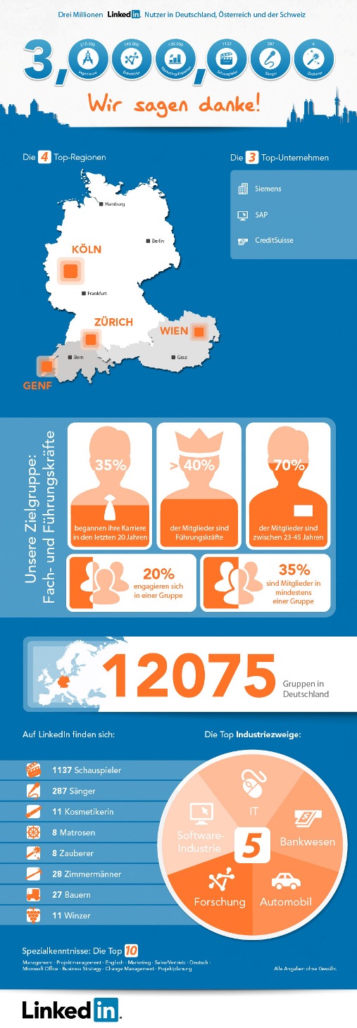 Pingback: LinkedIn mit 3 Mio. Mitgliedern in DACH - Social Media Statistiken | Medienbildung | Scoop.it